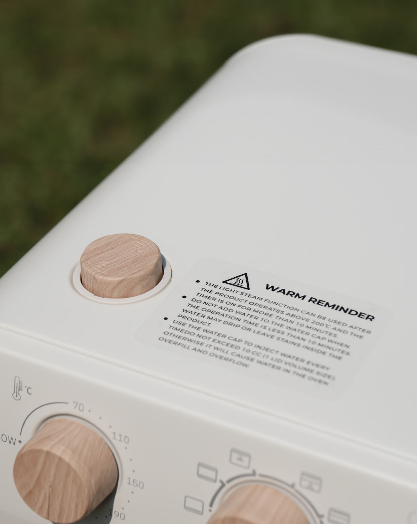Mode selection : Turn the woody knob to select air fry, bake, toast, roast, reheat, and dehydrate